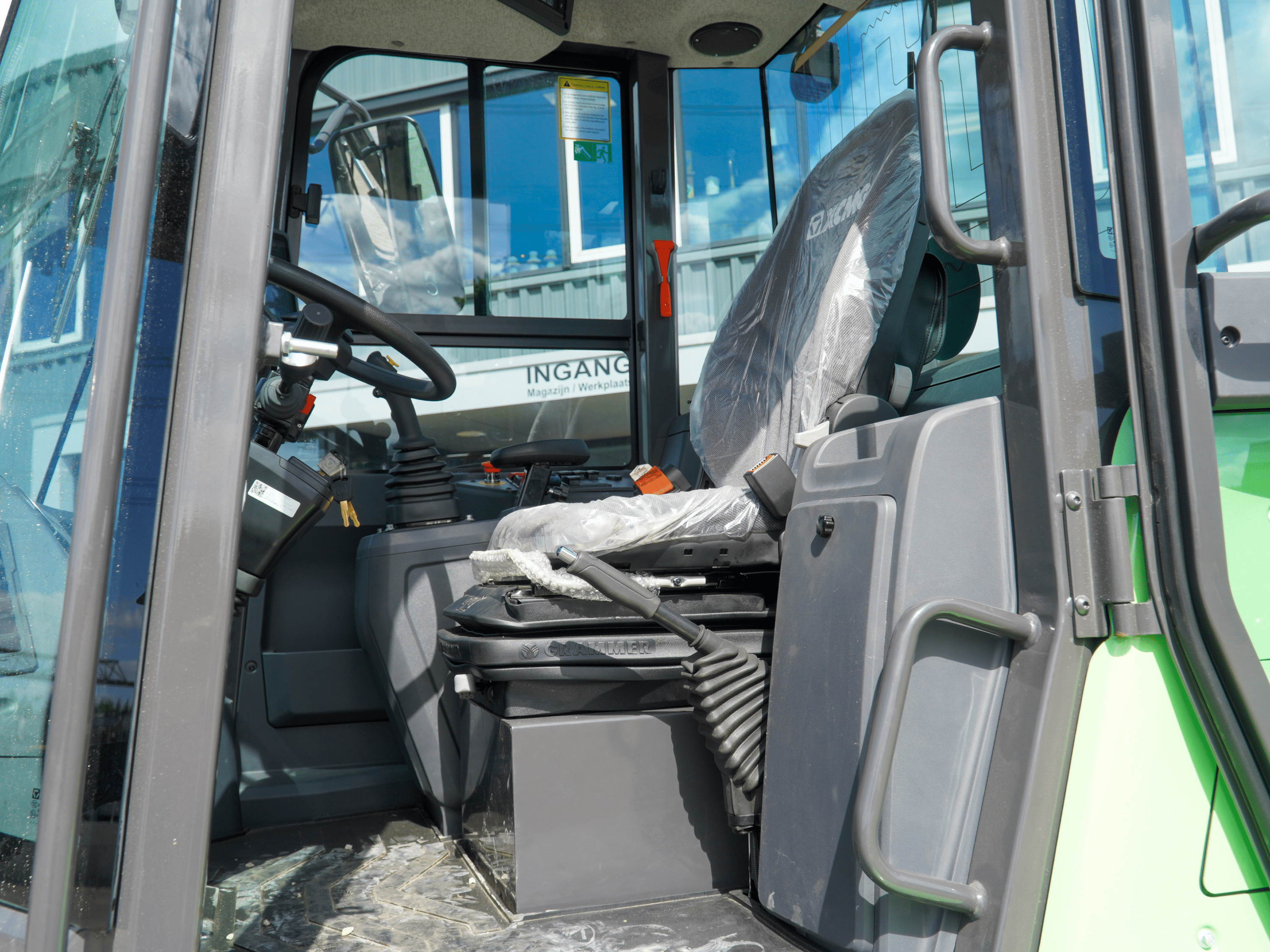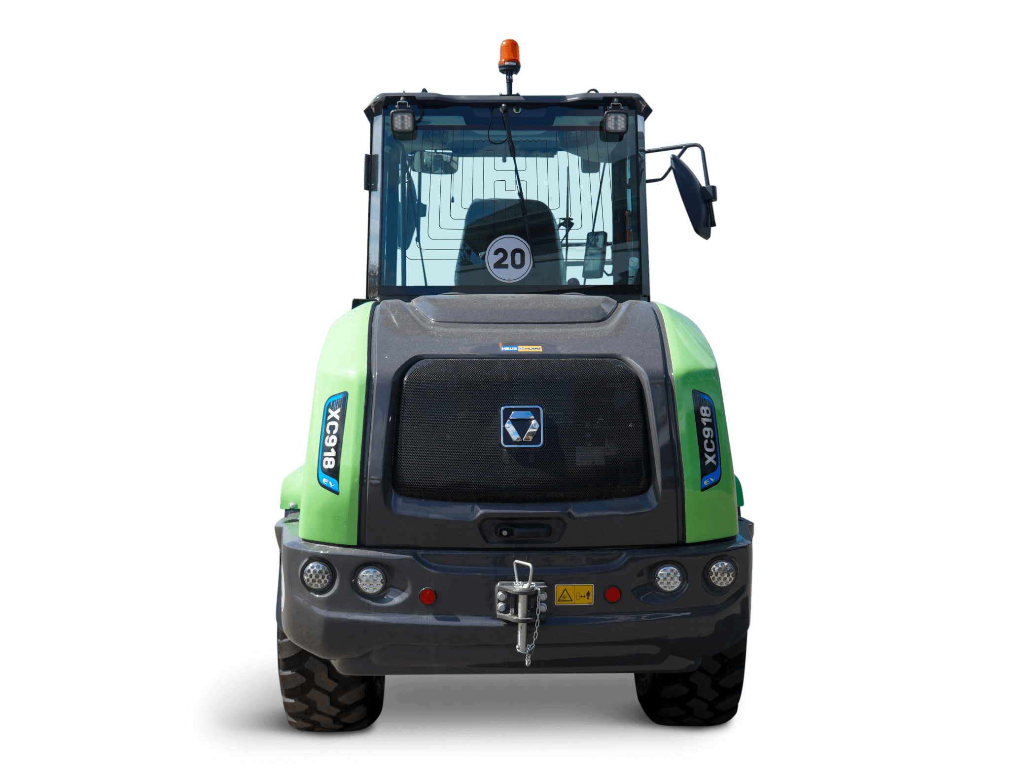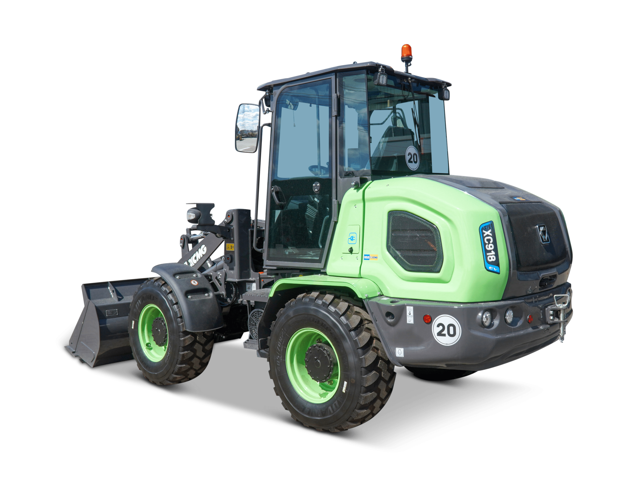 This is an electric compact wheel loader with a payload of 1.8 tonnes and a bucket capacity of 1 m³. It weighs about 6.7 tonnes and has a maximum unloading height of 2.67 metres. Thanks to its electric drive, the XC918-EV is very quiet, making it suitable for use in environmentally sensitive areas. The compact design with short turning radius enables flexible manoeuvring on narrow roads. The ergonomically designed cab offers panoramic visibility, low vibration levels and a protective frame, allowing the operator to work comfortably and safely.
